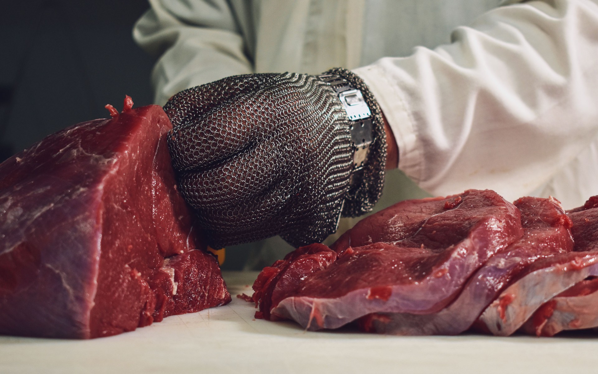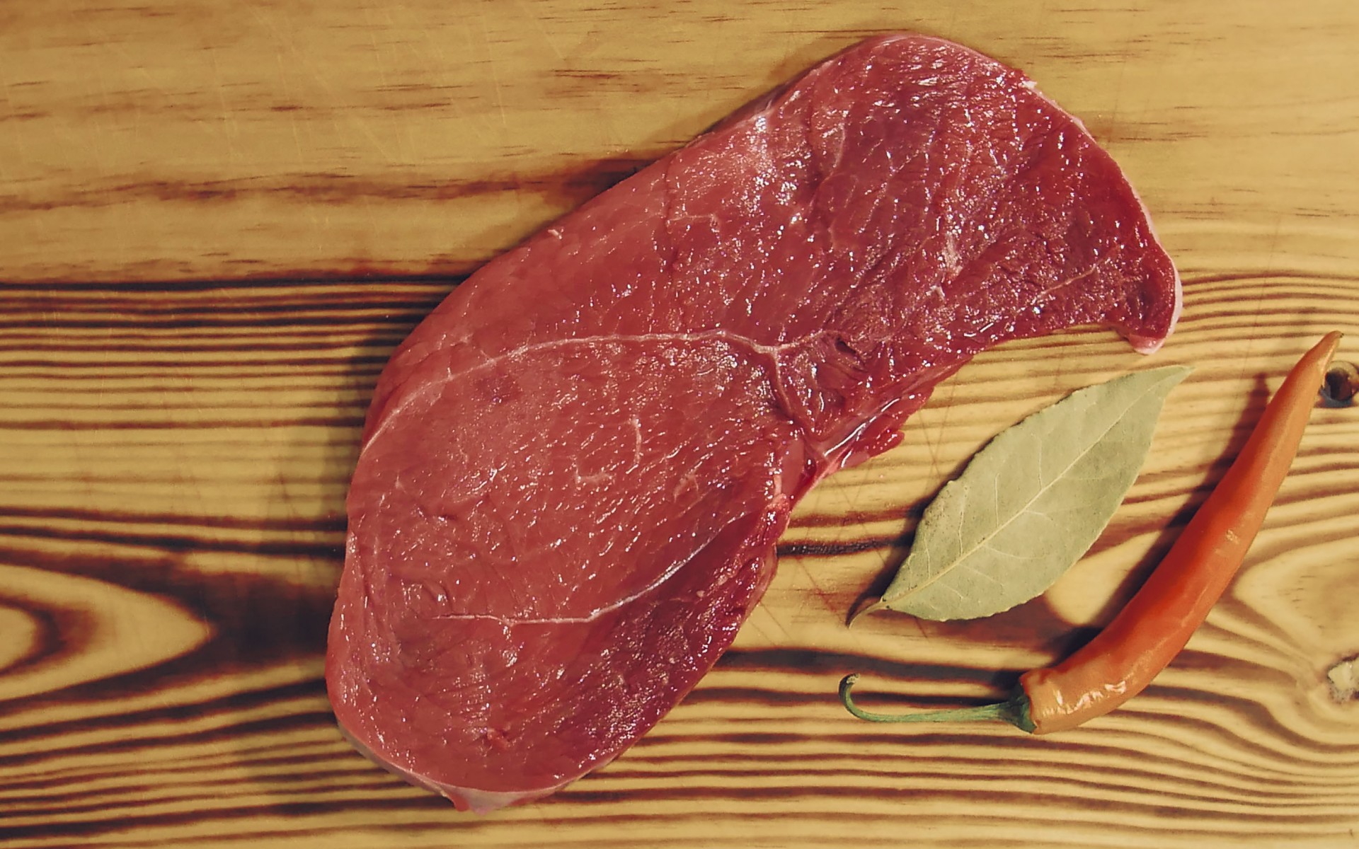 Bifes da rabadilha de vitela/vitelão, embalados em vácuo.