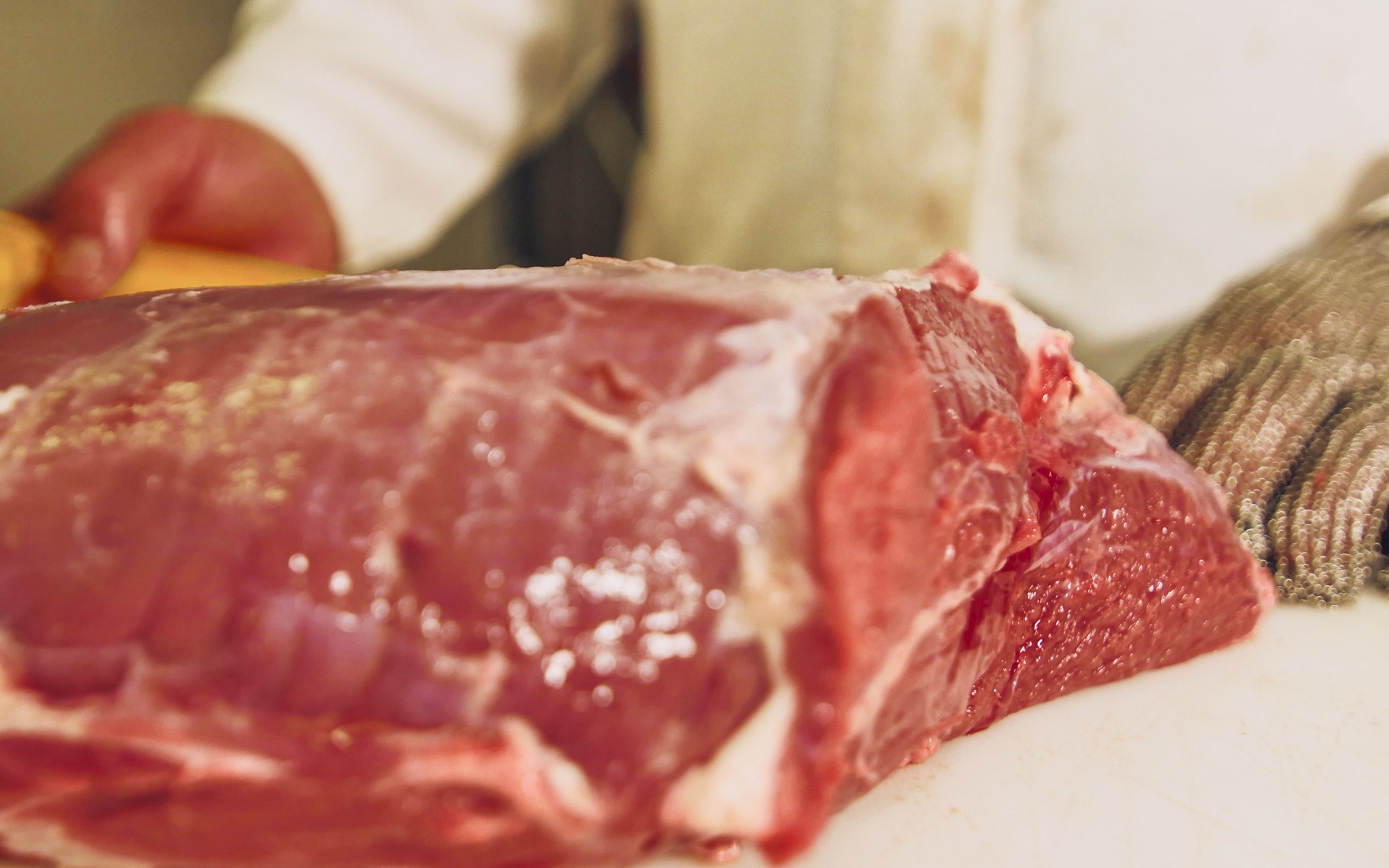 Carne proveniente do Chã de fora, Acém Comprido ou Pá de vitela/vitelão, embalada em vácuo.