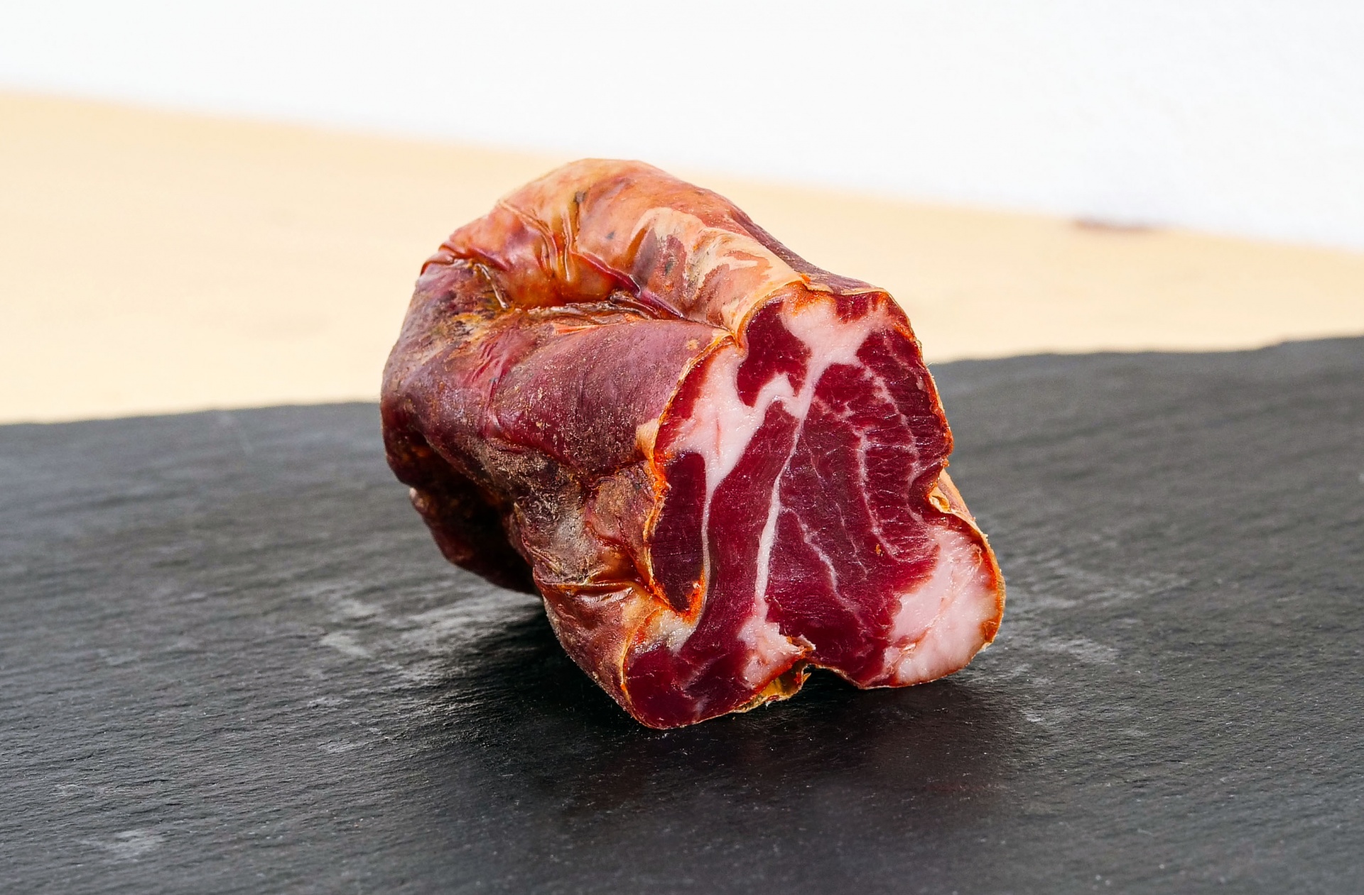 Ingredientes: Cachaço de Porco Preto, sal, Especiarias, Açucar, Antioxidante (E-301) e Conservante (E-252).