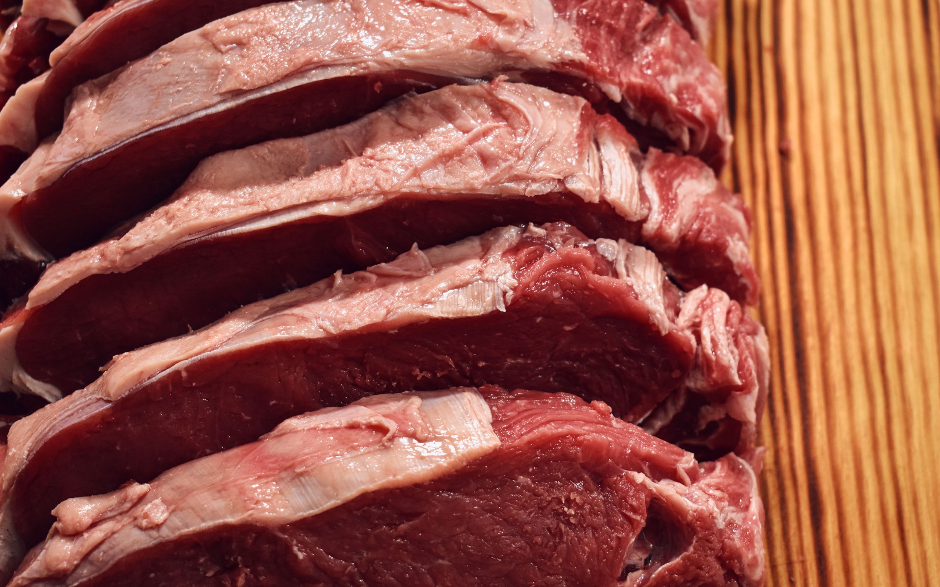 Bifes da vazia de vitela/vitelão, embalados em vácuo.